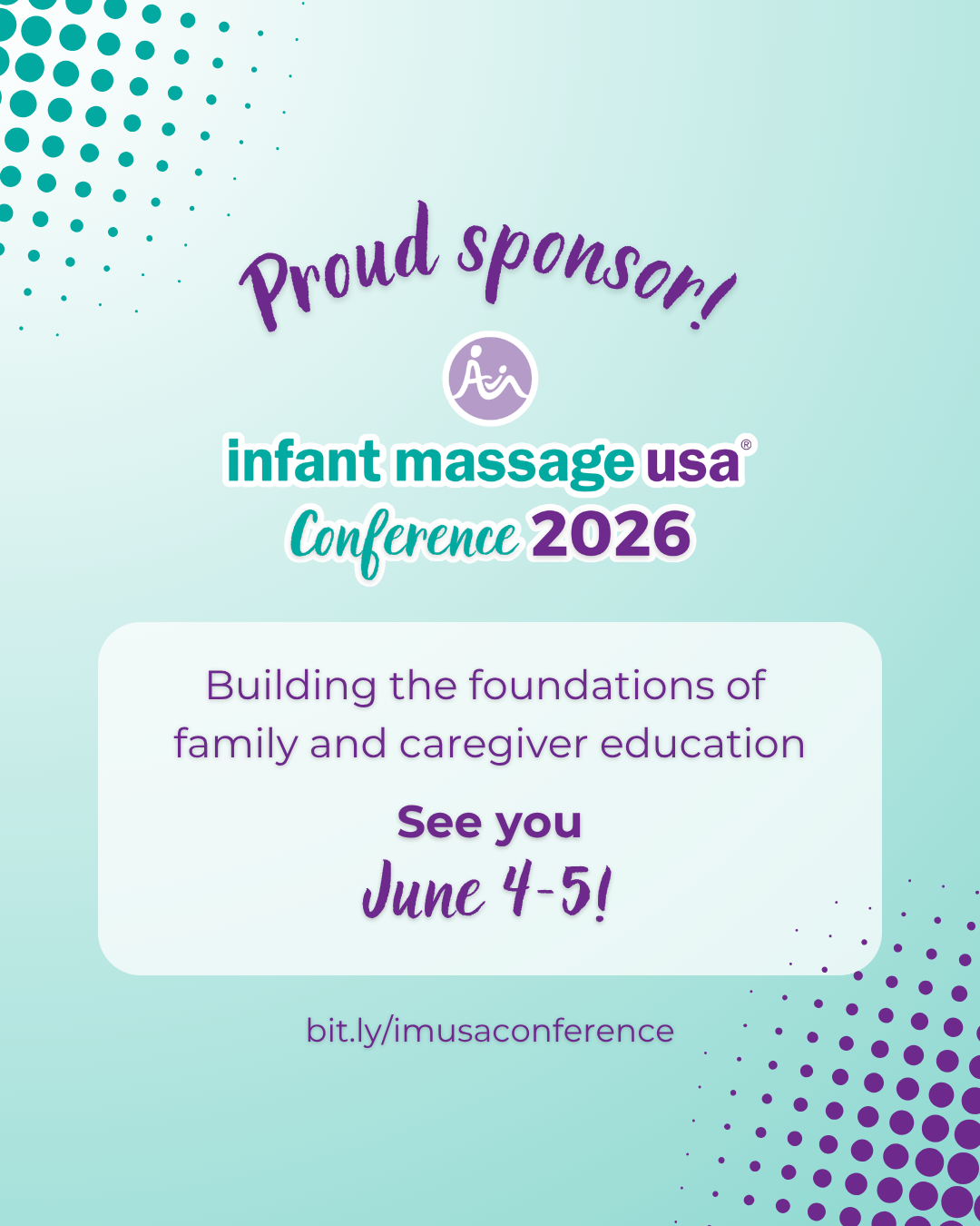 We’re so proud to announce that we are sponsoring the Infant Massage USA Conference! Join us to learn from expert speakers and connect with passionate professionals June 4-5.